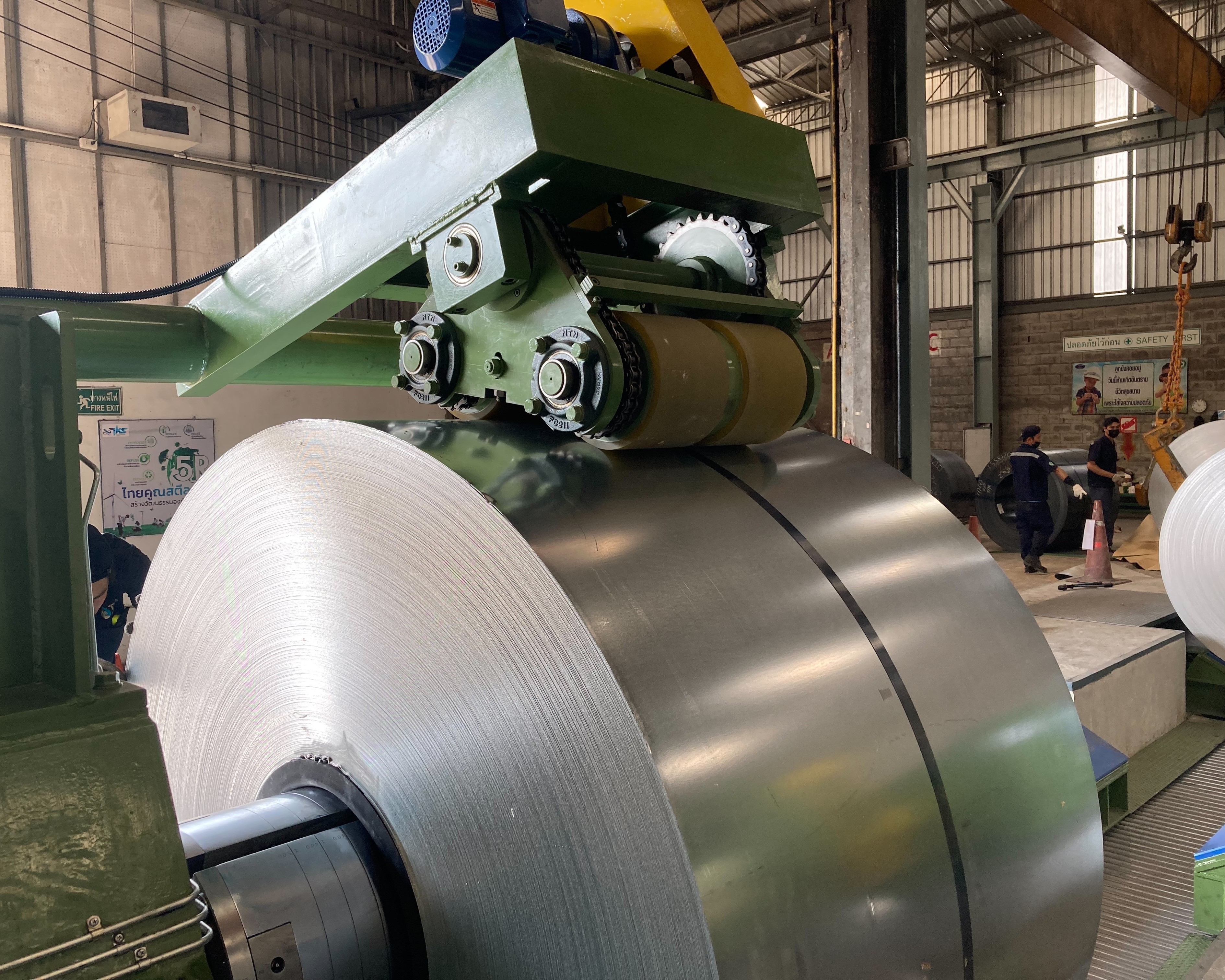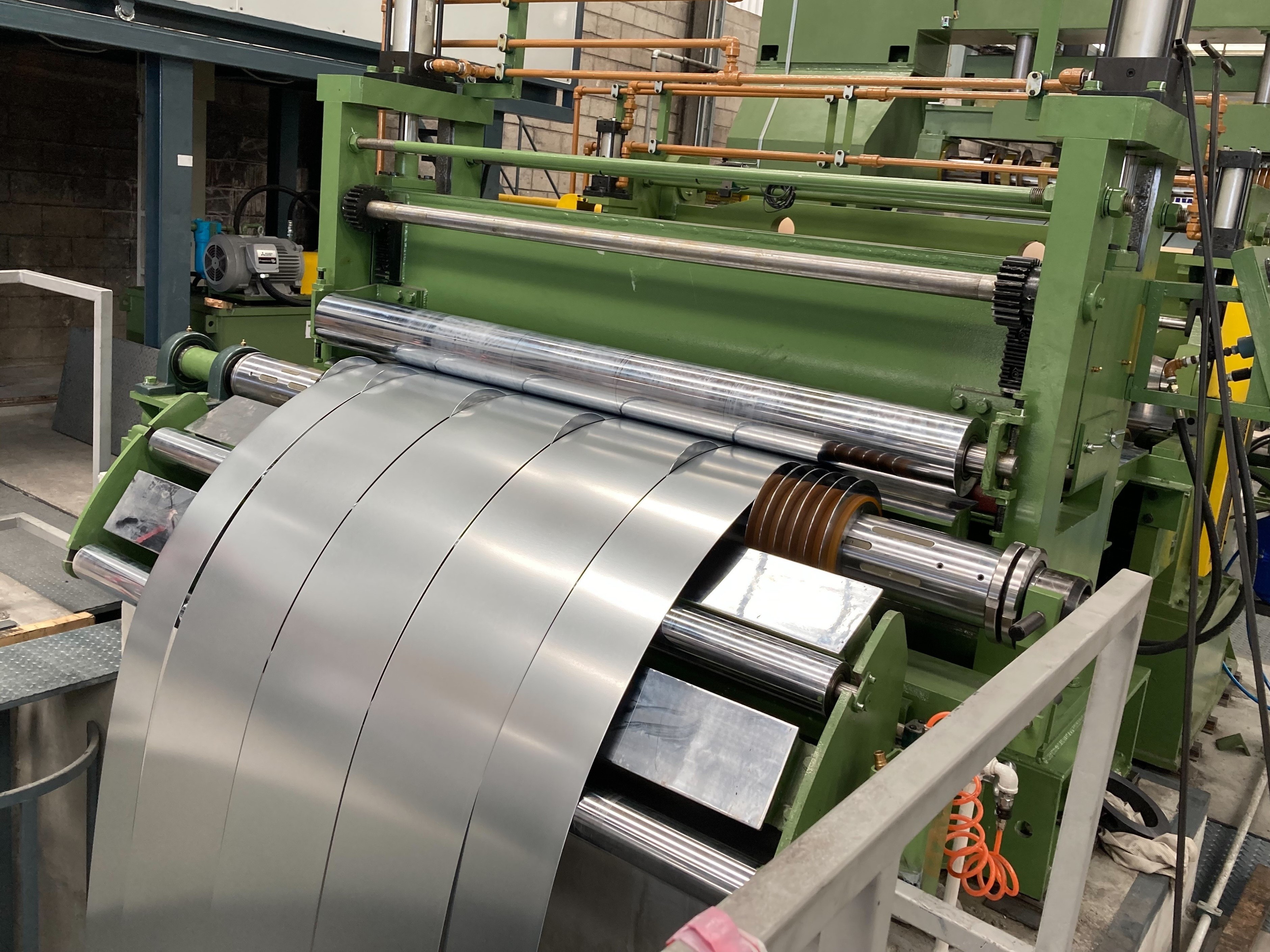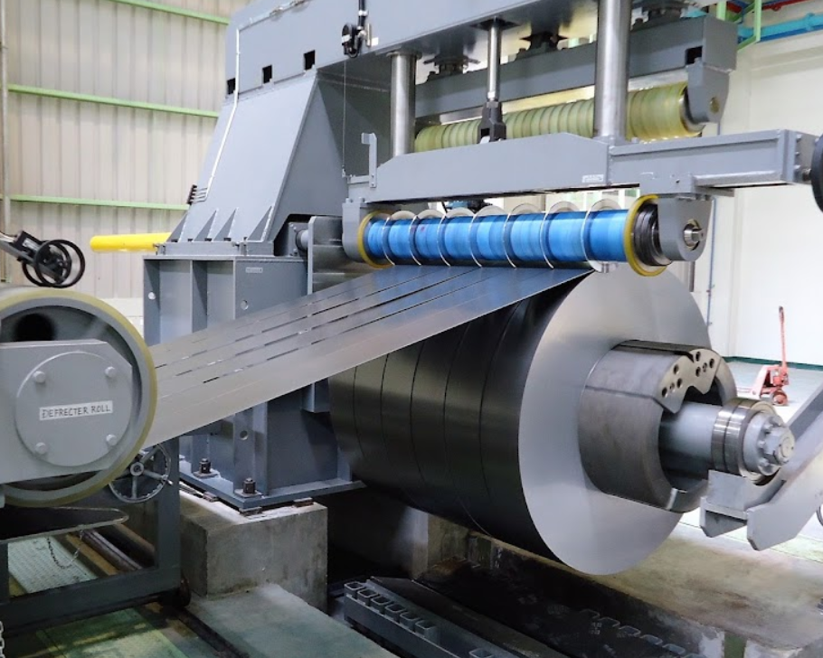 A slitter line is a shearing process line that feeds rolled steel strips (coils), slits them into the required widths, and then rewinds them into coils again.