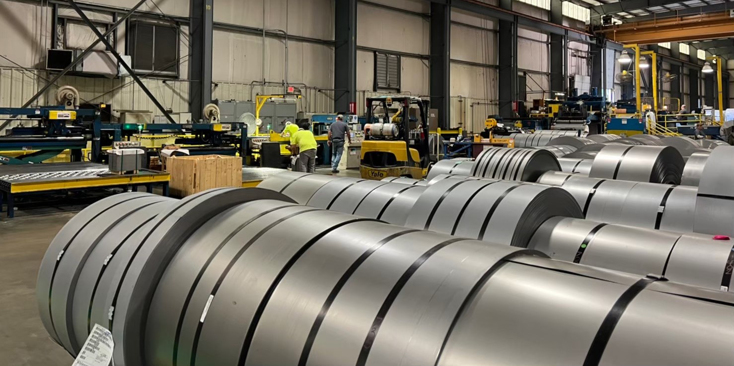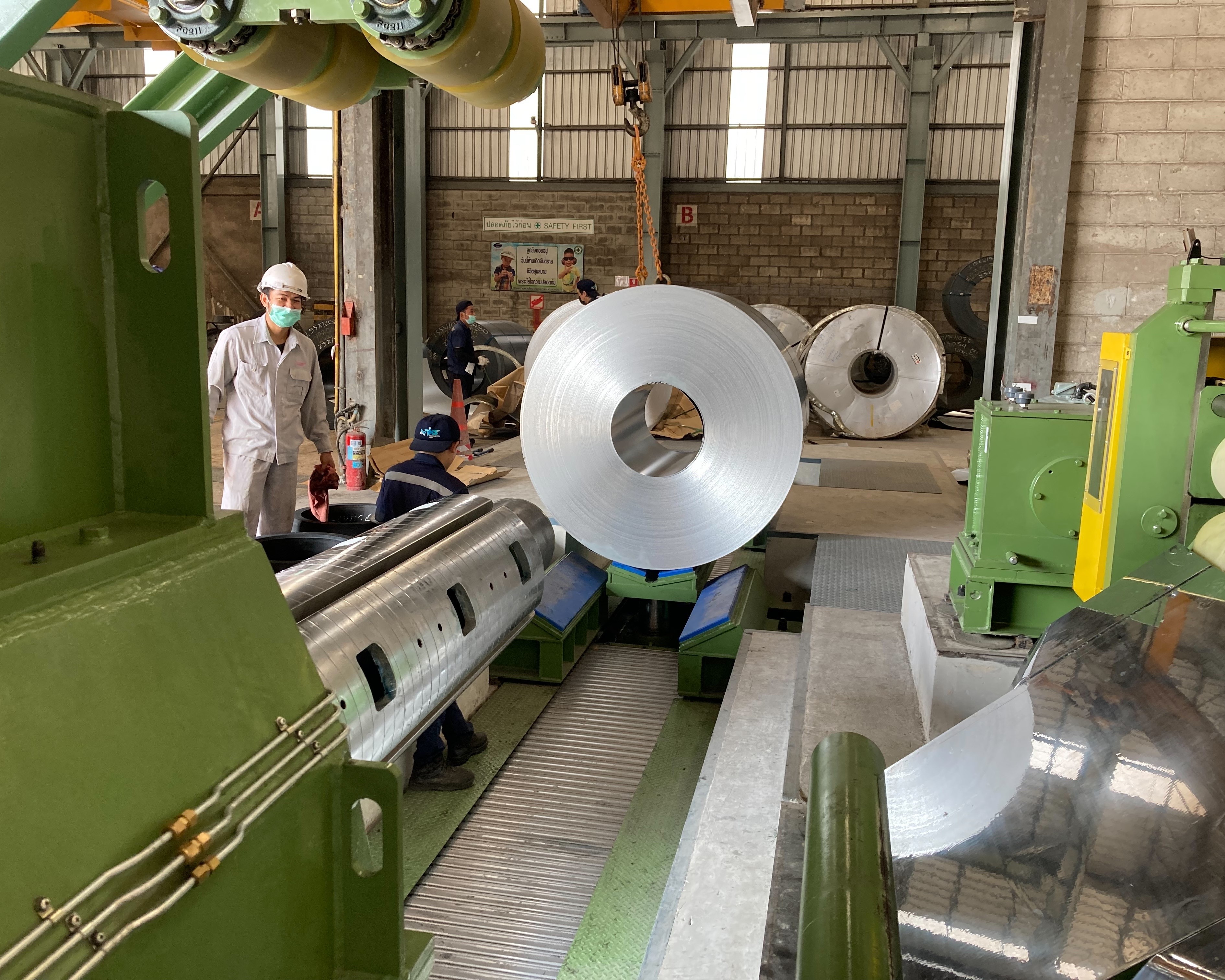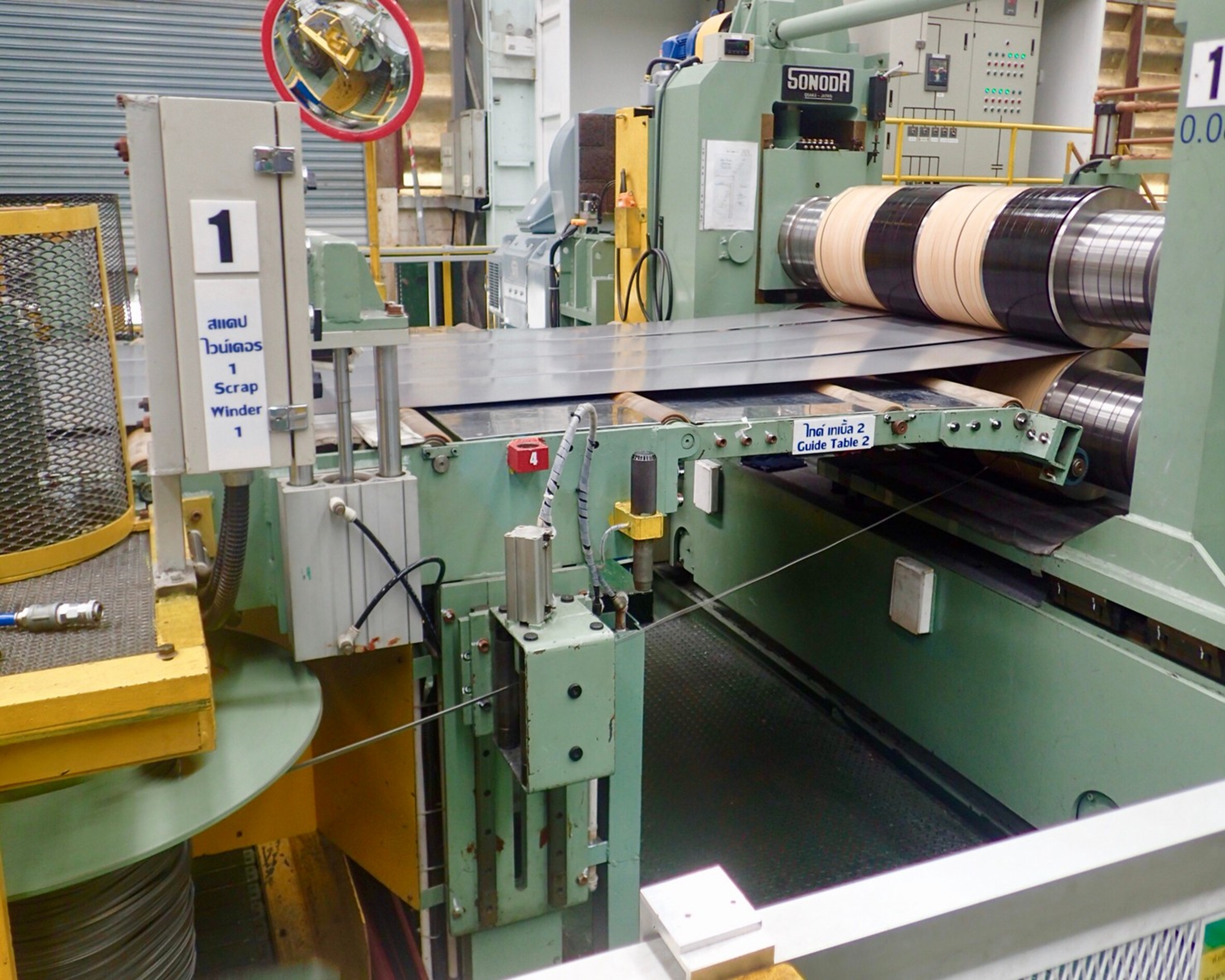 A slitter line is a shearing process line that feeds rolled steel strips (coils), slits them into the required widths, and then rewinds them into coils again.