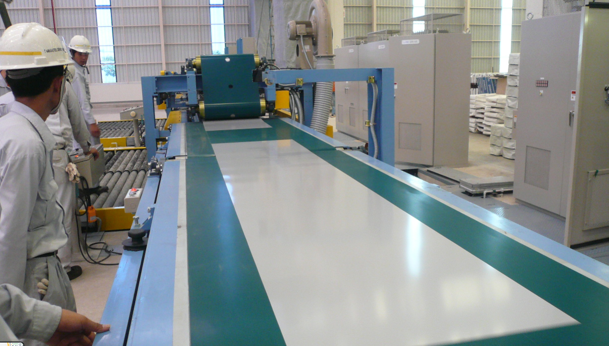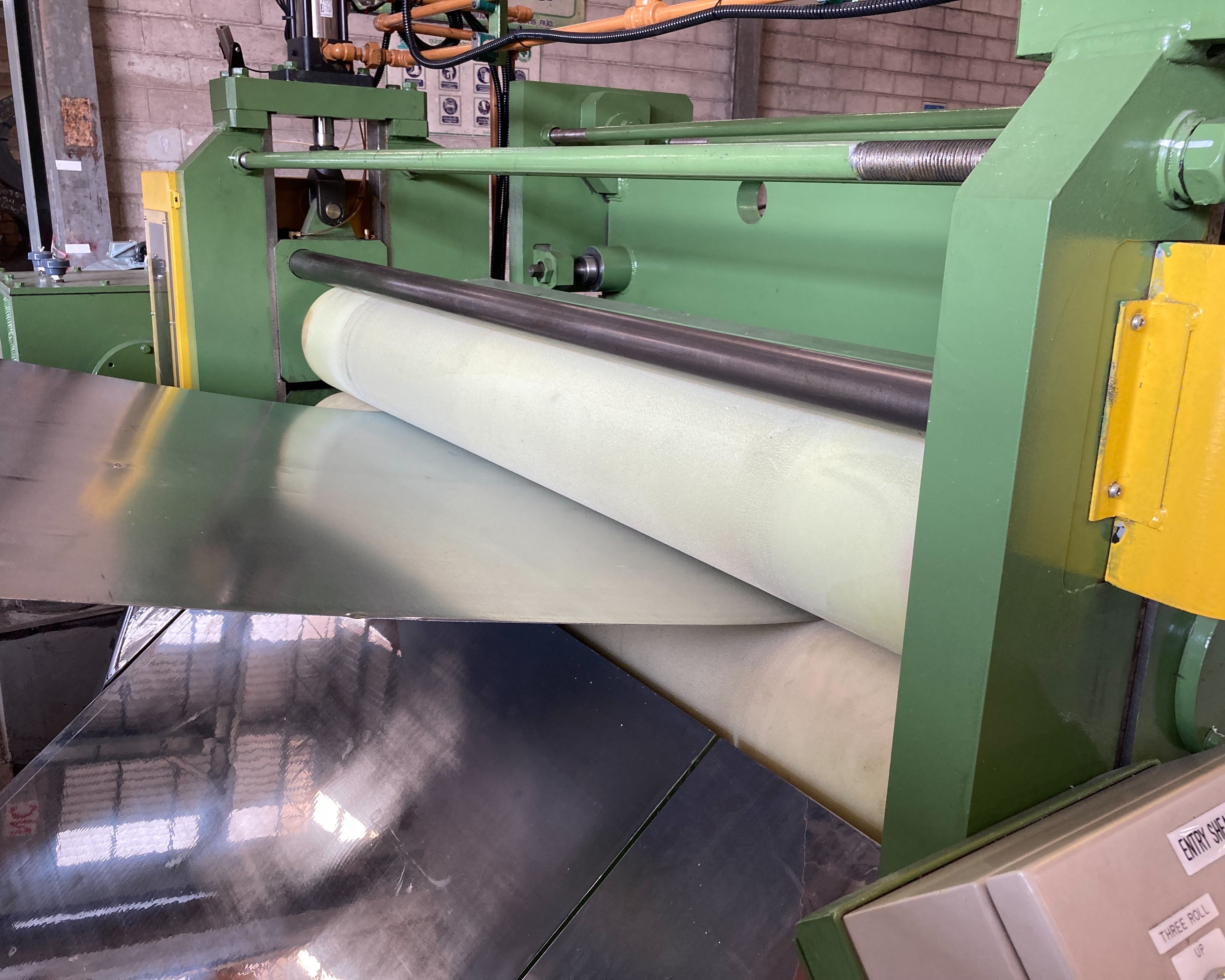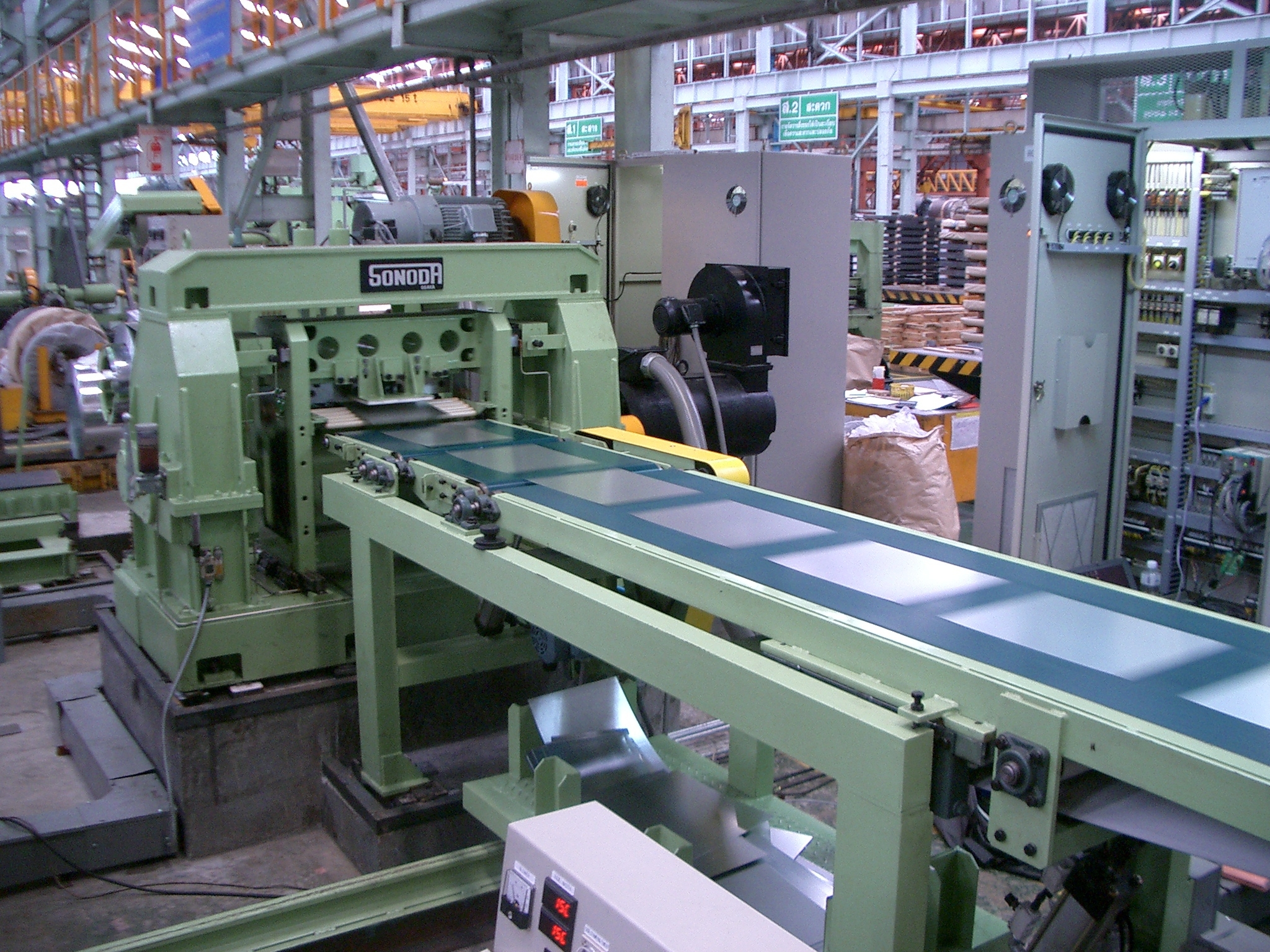 A leveler/shear line is a shearing process line that feeds rolled steel strips (coils), corrects coil set or curvature (leveling) to make them flat, and then cuts them into the required lengths (shearing).